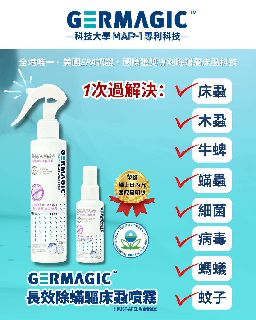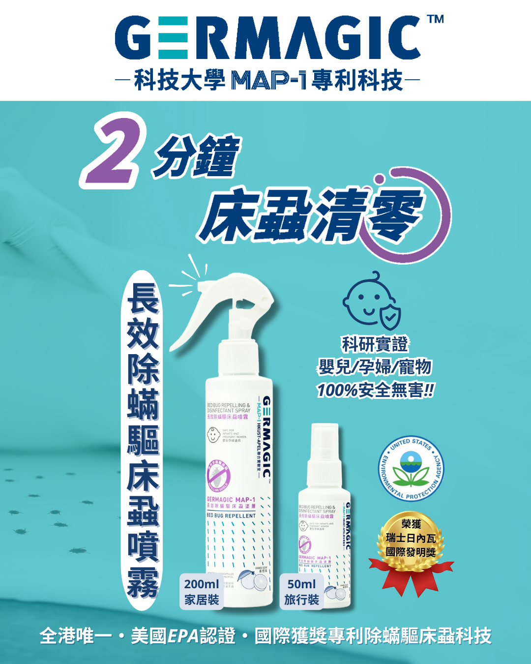 Easy to use: Simple to use, simply spray Germagic on the area where bed bugs need to be eliminated or prevented